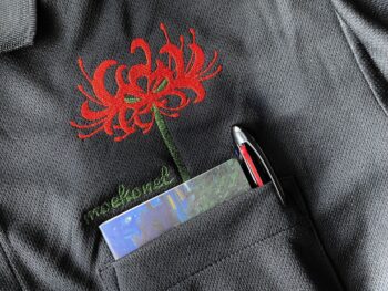 彼岸花の刺繍ポケットポロシャツ