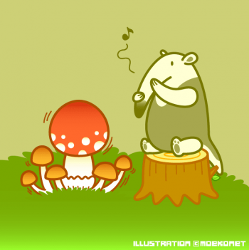 動物イラストNo.185「にょきにょきキノコとコアリクイ。」