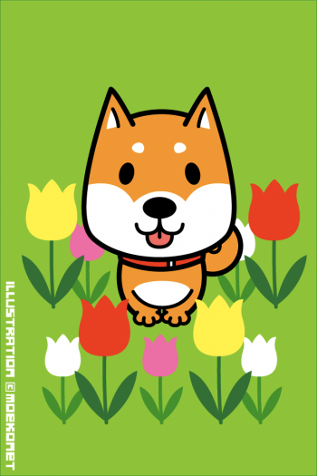動物イラストNo.226「柴犬とひまわりと…」