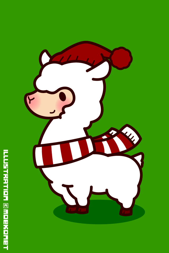 動物イラストNo.87 「アルパカマフラー。」 動物イラスト2014.11.10 アルパカの毛で編んだ、アルパカマフラーというのがあるそうで。 そろそろこの時期になると、モコモコであたたかそうですね。 今日のイラストはマフラーをしたアルパカ。