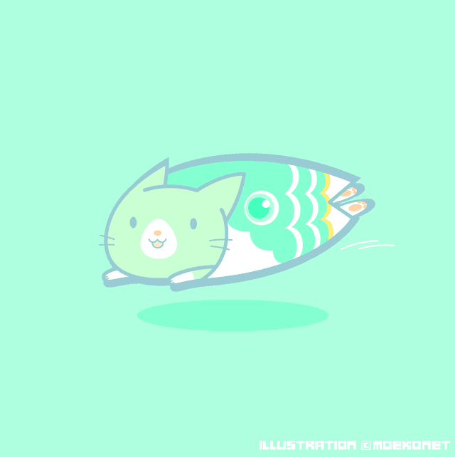 動物イラストNo.215「そでねこ、こいのぼり。」